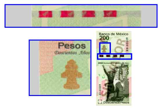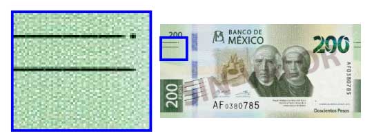 A diferencia de otros billetes, este no cuenta con tantas áreas con relieve, así que debemos poner especial atención en ellas. Pasa tu dedo en las zonas marcadas en la foto de arriba y podrás averiguarlo.