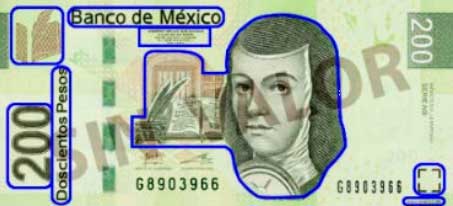 Como ya pudiste darte cuenta, las medidas de seguridad de este billete son prácticamente las de su misma familia (F), así que no te será difícil asegurarte de su autenticidad. No olvides que así como se ve la cara de Hidalgo, también debe apreciarse la denominación de este ejemplar, la cual debe estar justo abajo de esta cara.