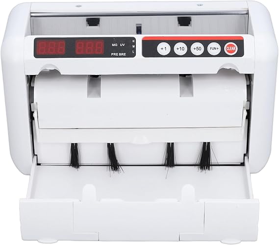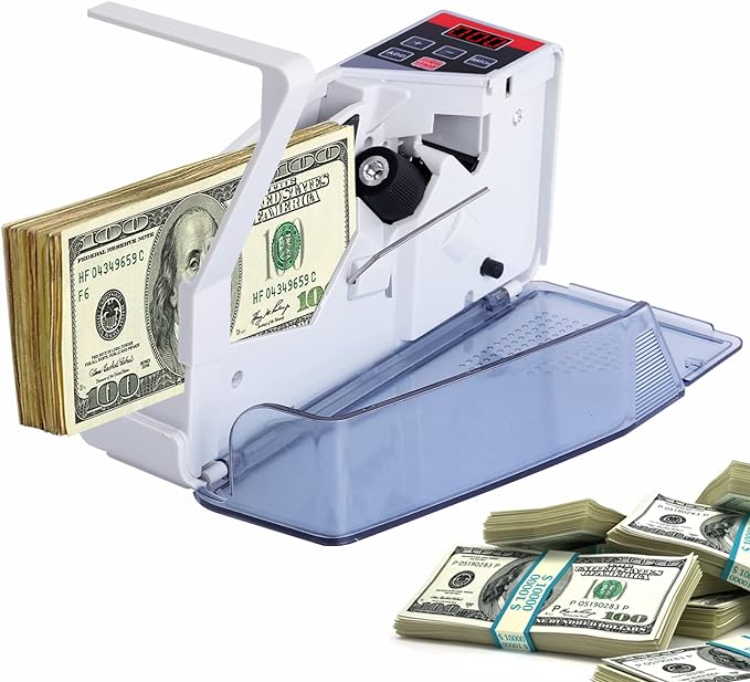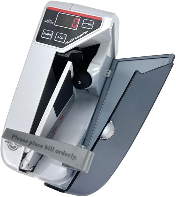 Súper práctico si necesitas contar billetes rápido y sin complicaciones. Puedes usarlo conectado a la corriente o con pilas AA (necesita 4, pero no vienen incluidas), lo que lo hace ideal para llevarlo a donde lo necesites. Además, trae una luz UV integrada para revisar si los billetes son auténticos, lo cual se agradece. Tiene una pantalla LED donde puedes ver cuántos billetes has contado, y si necesitas seguir contando, solo le das al botón de “ADD” y listo. Su velocidad también es bastante buena: puede contar hasta 600 billetes por minuto, siempre y cuando todos tengan el mismo tamaño y estén bien apilados (se recomienda colocar un máximo de 50 billetes por sesión).
