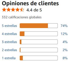 *Las opiniones mostradas son meramente ilustrativas y no reflejan las calificaciones dadas por Amazon a los productos que se ofertan