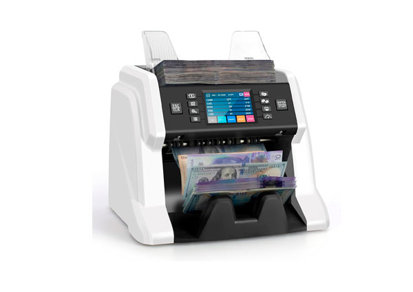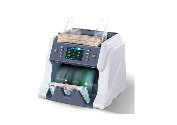 - Conteo de billetes: Hasta 1,200 billetes x min y cálculo automático de cantidad y valor total